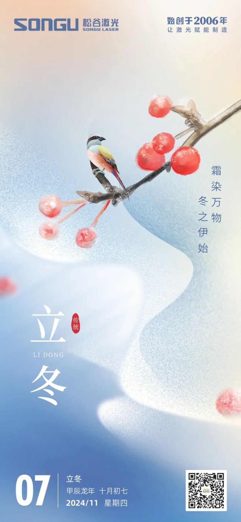 冬至已至,寒梅待(dai)放,松谷激光科(ke)技在这个寓意着团(tuan)圆与希望的节气里,向每(mei)一位合作(zuo)伙伴、客户及全体员工致以最温(wen)暖(nuan)的祝福: